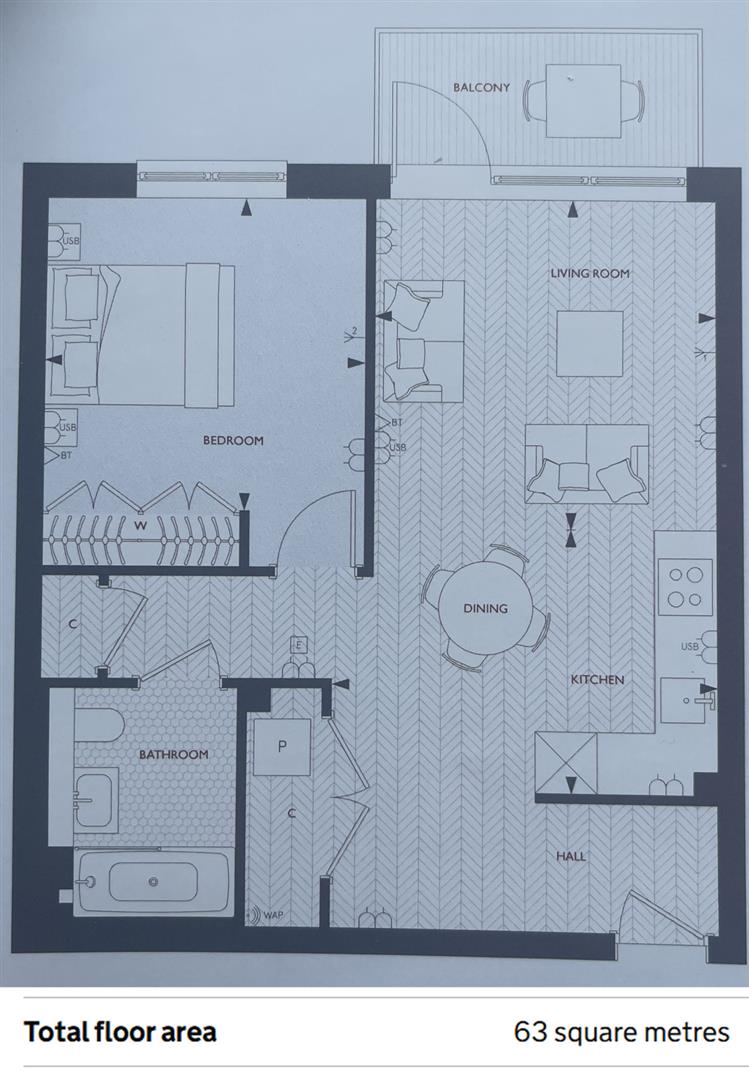 This property comprises a large bright open plan kitchen and living room leading to a large private balcony with great views, one double bedrooms with built-in wardrobe, a large family bathroom and ample storage. A virtual viewing is provided.