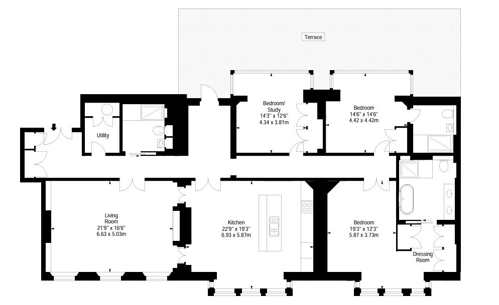 The apartment is located on the first floor and is set over 2400 sq ft and boasts sublime finishes and natural light.