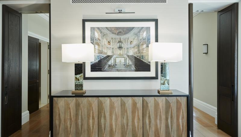 The apartment features a grand reception room which is generously proportioned offering elegant living and entertaining space. The spacious Bulthaup kitchen which is fully equipped with Gaggenau appliances & a dining room which features spectacular cornicing with rich dark tones have been used in this stylish dining area to create a prestigious atmosphere, perfectly designed for relaxed gatherings with friends or family alike, or equally appointed for more formal entertaining.